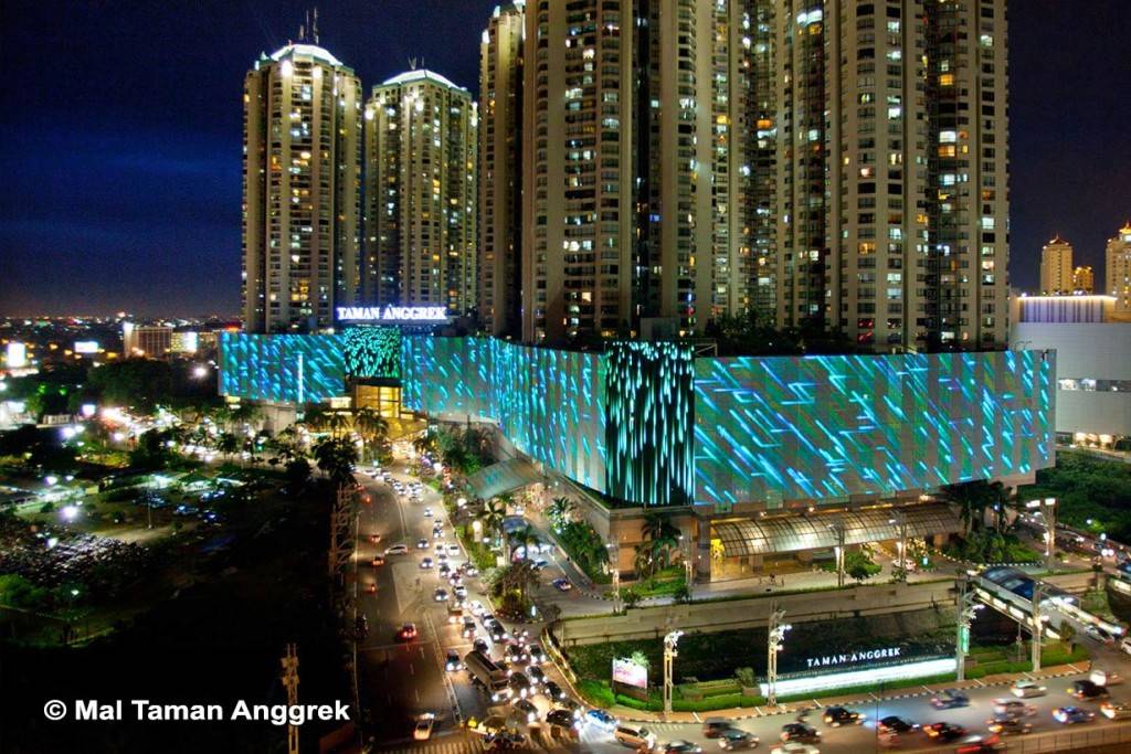 Медиафасад протянулся через основную стену пятиэтажного атриума и