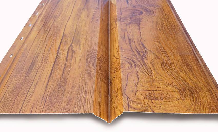 Металлический сайдинг, имитирующий дерево, – стильная и надёжная облицовка фасада. Панели производятся из тонколистного оцинкованного железа посредством метода формовки. Имитацию дерева обеспечивает полимерное или декоративное покрытие.