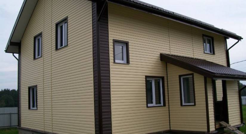 Фасад дома из СИП панелей нередко оформляют при помощи деревянной вагонки. Отделка очень схожа на бревенчатой сруб, ведь для ее изготовления задействуют натуральную древесину. В основе блок-хауса положено оцилиндрованное бревно, а его боковины срезают с 4 сторон. Дома, построенные из СИП панелей и отделанные при помощи блок-хауса, приобретают прочность и надежность.