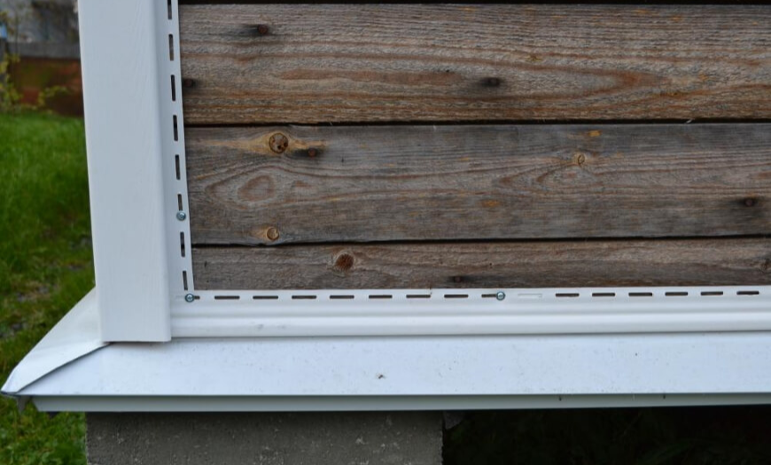 Стартовую планку, или J-профиль, используют в качестве нижнего ряда, от которого пойдет основная обшивка стены. Монтаж проводят таим образом: