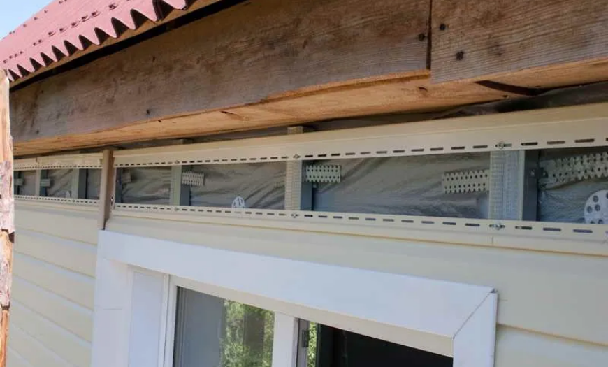 - Если глубина проема большая, на откосах собирают обрешетку и отделывают ее сайдингом, который используется на стене. Предварительно укладывают теплосберегающий материал и гидроизоляцию.