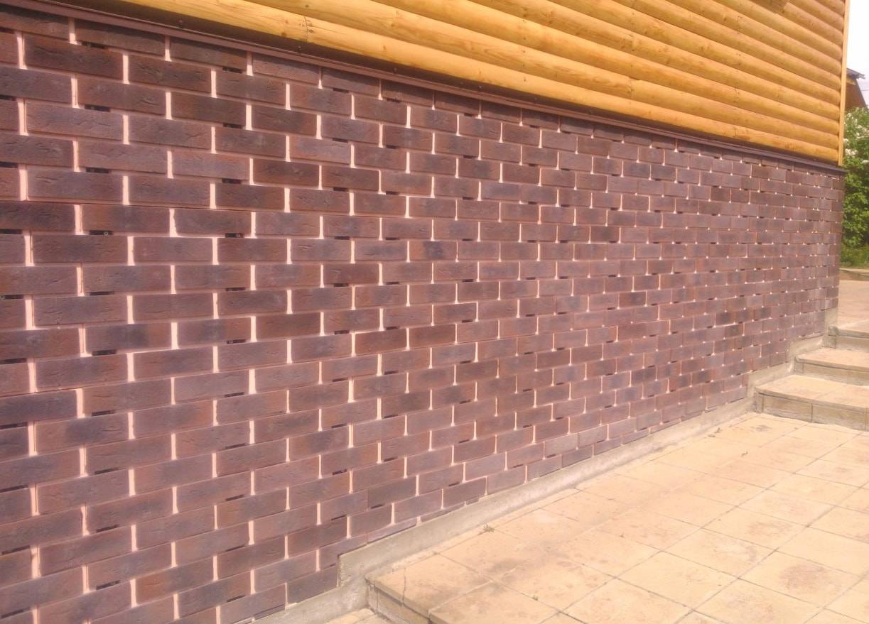 Эта облицовочная плитка отличается гибкостью, эластичность, что делает возможным ее применение для облицовки полукруглых и круглых элементов цоколя. Внешне они имитируют кирпичную кладку или «рваный» камень.