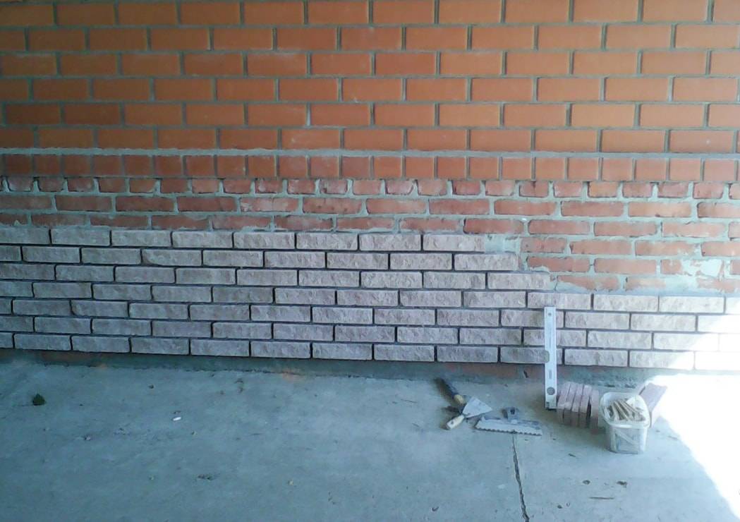 - далее в нижнюю часть фундамента устанавливается профиль, на который будет выкладываться первый ряд облицовки;
