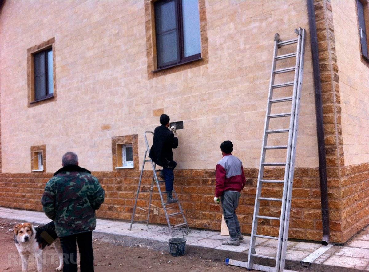 Не возникает проблем и при монтаже. Отделка фасада дагестанским камнем — процесс несложный и довольно быстрый. Облицовочный материал можно укладывать даже в сырую погоду, главное, не допускать попадания воды между стеной и плиткой.
