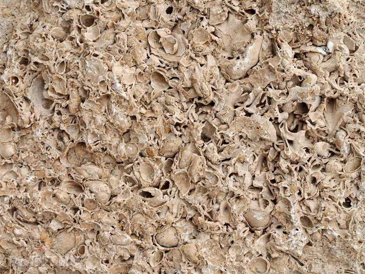 Ракушечник – это известняк из раковин морских животных. В структуре можно отчётливо увидеть ракушки разных форм. Его также применяют при отделке каминов, благодаря его жаростойкости.