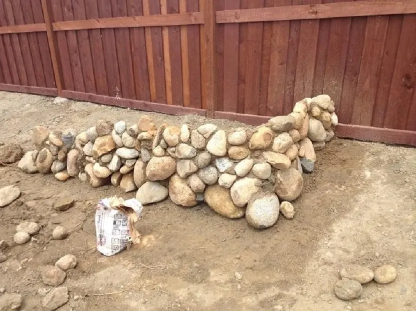- Смесь укладывается в процессе кладки. Швы между камнями остаются чистыми, что делает их более естественными. Недостатком является попадание в щели воды и вероятность последующего размораживания, способного привести к частичному разрушению клумбы.
