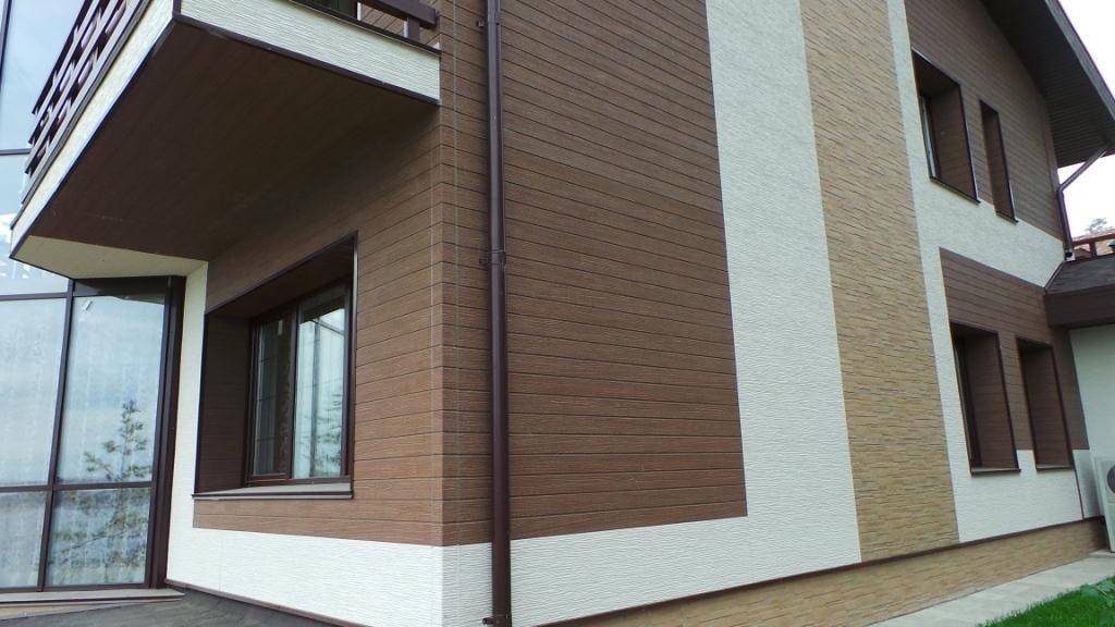 Таким образом, существует «сухая» установка саморезов или дюбелей, получается вентилируемый фасад — работа чистая и быстрая. Монтаж начинается с угла, он выглядит и фиксируется как сайдинг — пластины легко устанавливаются друг на друга, нечётные плитки вырезаются по размеру, а также фиксируются винтами.