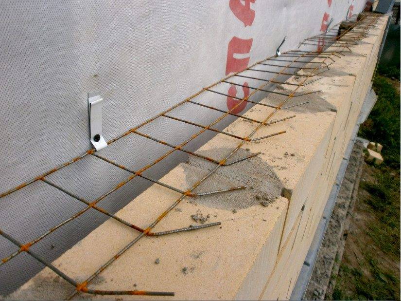 - закрепление к стене арматурной сетки и заведение ее в облицовочный слой на половину ширины (такая сетка устанавливается по всей ширине стены с определенным шагом по вертикали);