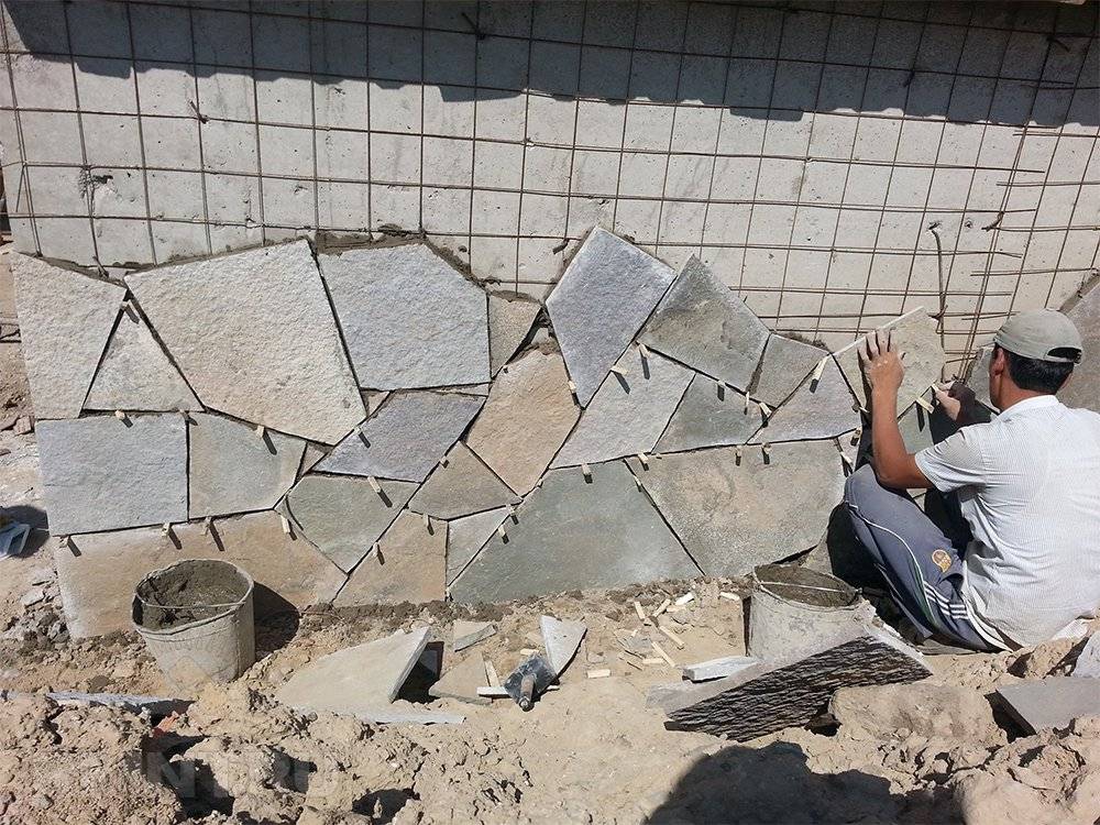 - Клей для работы с неформатным камнем должен иметь значительное время жизнеспособности смеси (около 1–1,5 часов), в то время как для каменной плитки оптимальное время схватывания — 30–40 минут.