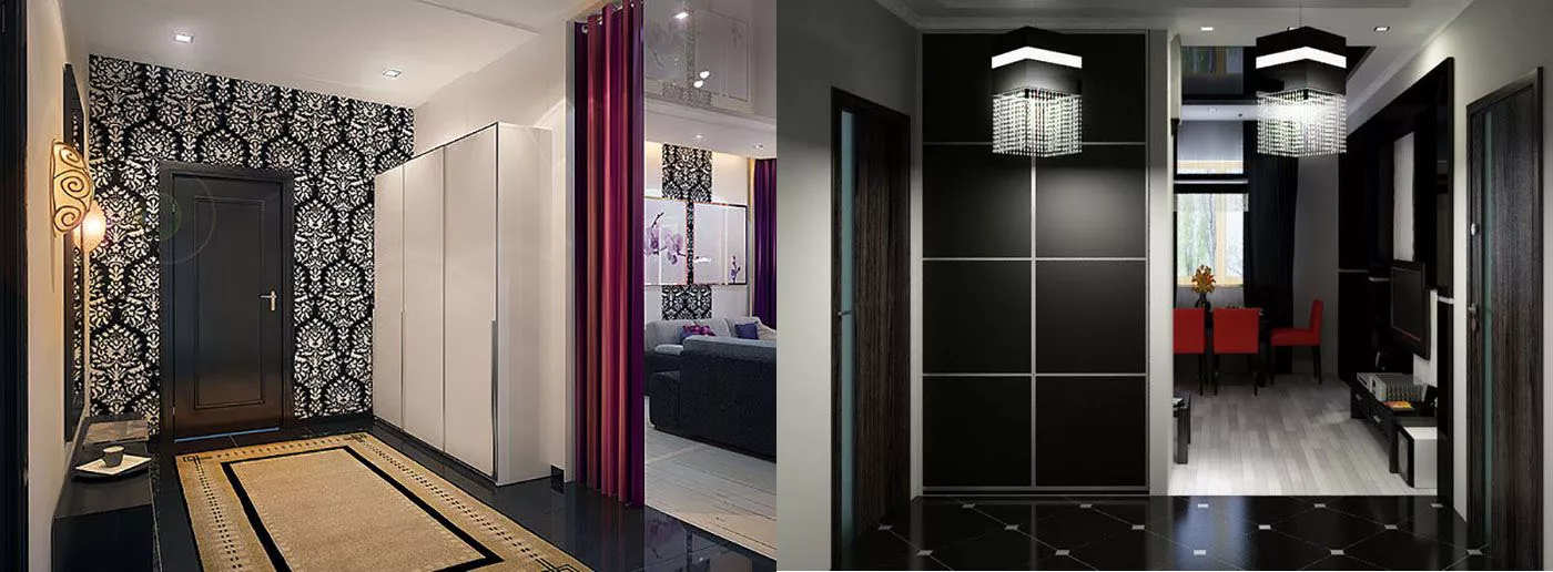 Темные, холодные цвета сделают коридор мрачным и даже могут визуально сделать его еще меньше. Для такого цветового решения требуется особый сценарий освещения.