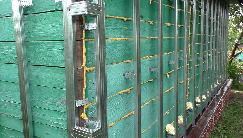 Обрешетка из профиля под сайдинг монтируется по следующей схеме: