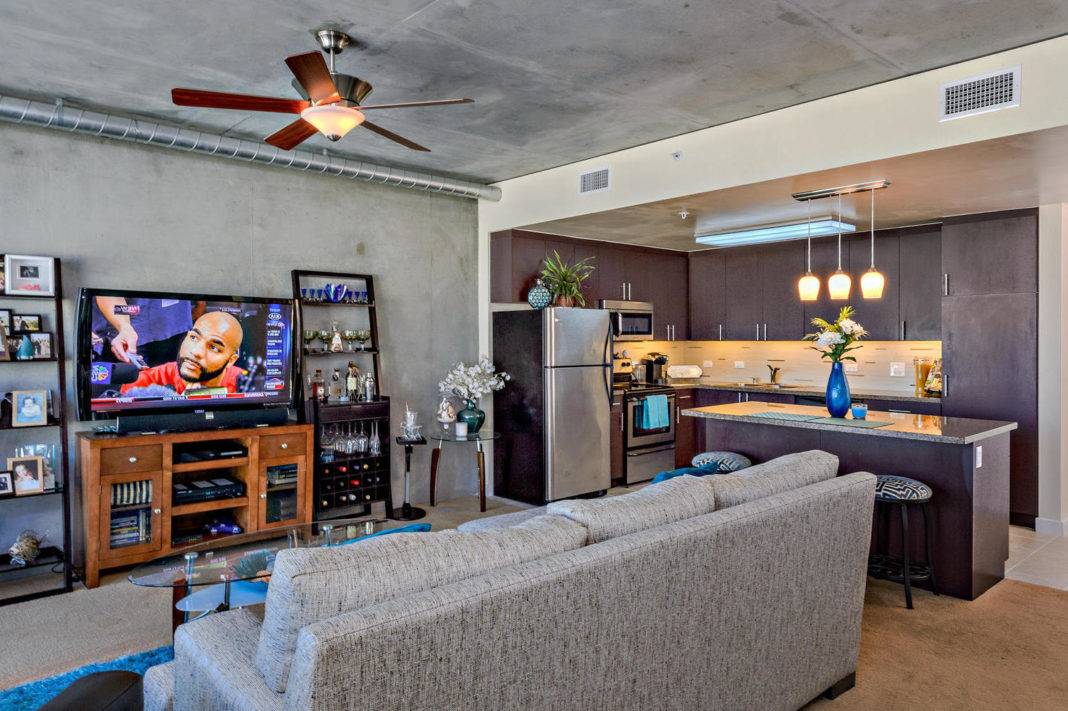 Объединение кухни с гостиной. Такое конструкторское решение подходит и для больших, и маленьких квартир. Для объединения комнат частично убирают стену-перегородку, но сохраняется условное деление на зону отдыха и обеденную зону. Для отделения функциональных участков используют разную отделку стен и пола, декоративные перегородки, барные стойки или мебель.