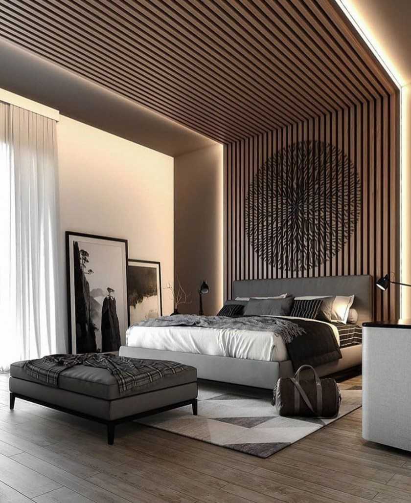 Вроде бы все просто, никаких излишеств, но вариант отделки интерьера спальной и ее освещение выглядят очень удачными.