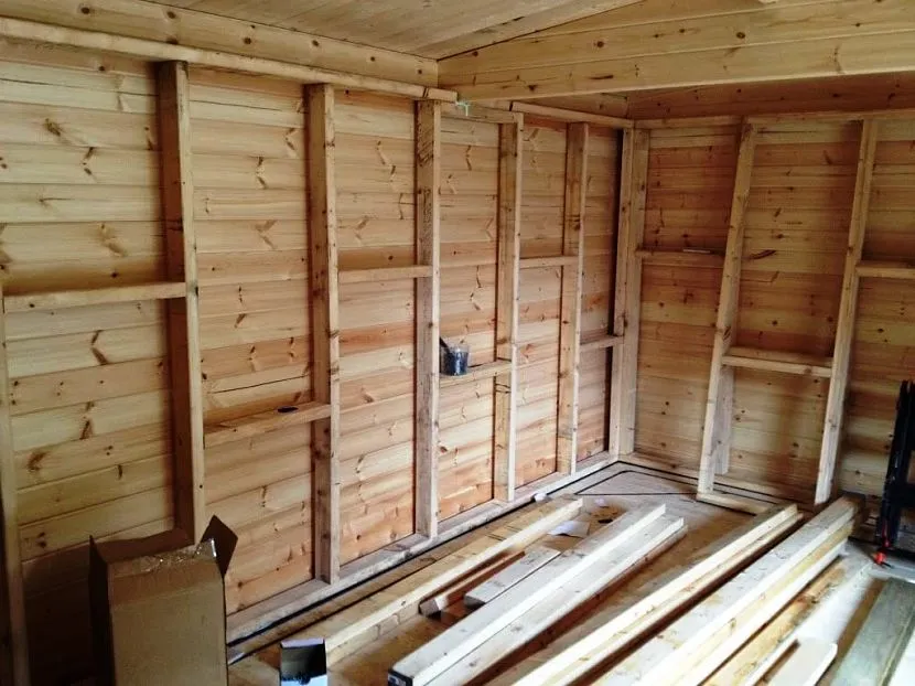Крепёж обшивки со стойками каркаса — 60-милиметровые гвозди.