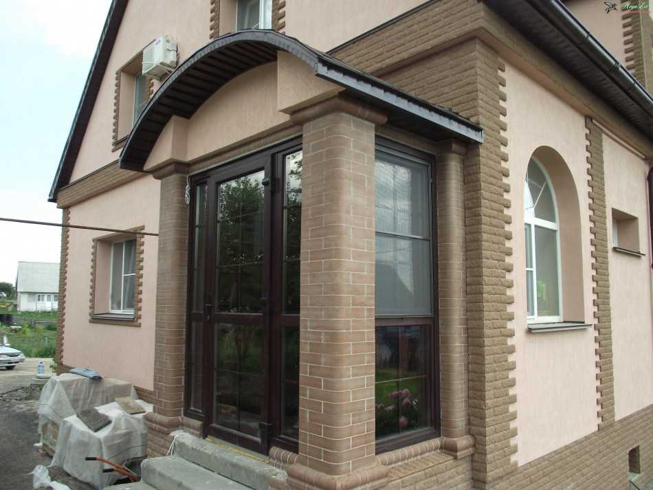 - В оформлении фасада красивых недорогих домов могут участвовать конструктивные элементы вроде дверей и окон, наличников, козырьков и даже функциональных пристроек. Однако если проект дома изначально ориентирован на стилевые пристрастия хозяев, отделка должна ему соответствовать.