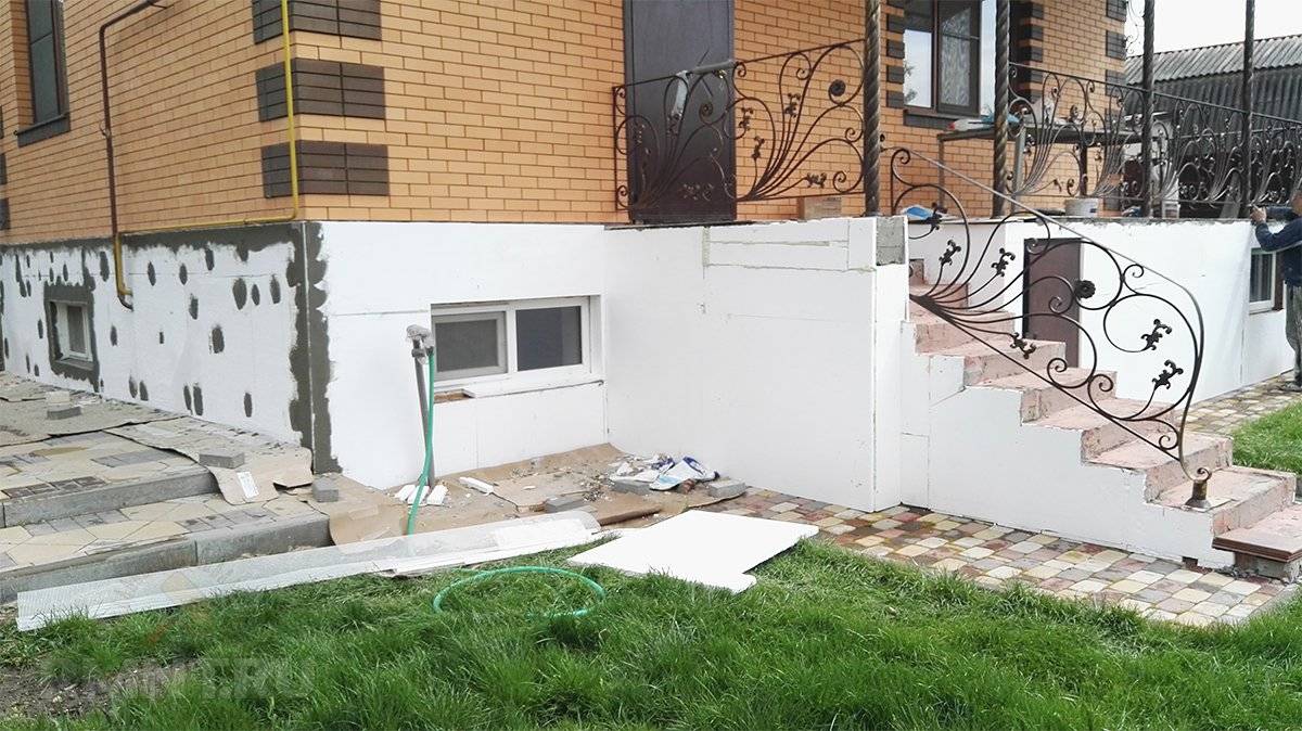 Для утепления цоколя следует использовать пенополистирол, изготовленный методом экструзии, то есть XPS: закрытая форма ячеек в нём исключает накопление влаги, то есть в столь жёстких условиях эксплуатации материал прослужит действительно долго. Допускается использовать и более продвинутые материалы, такие как пеностекло или PUR, но их высокая стоимость оправдывает применение по большей части в строительстве зданий с нулевым и положительным энергобалансом.