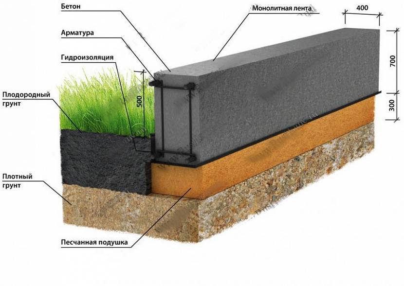 Второй этап – заливка бетона. Технологически правильно сделать это за один прием, но иногда допускается и послойная заливка. По мере затвердевания опалубка снимается – фундамент должен набрать прочность в течение 30 дней. После этого проводят гидроизоляционные работы, и начинается сборка нижней обвязки.