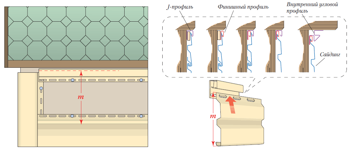 Завершая монтаж сайдинга своими руками, под крышей крепится финишный или J-профиль (если вы этого не сделали в самом начале) (Рис. 17).