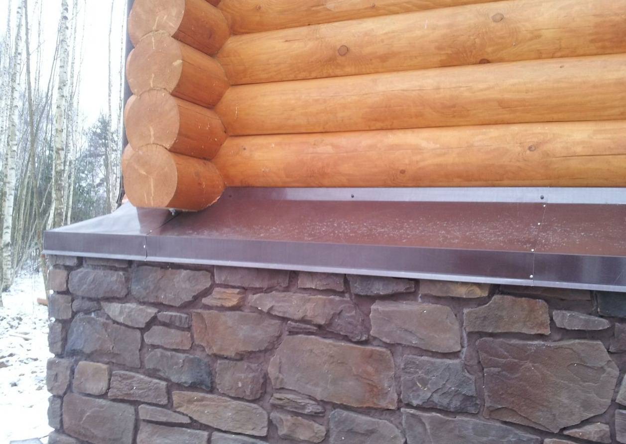 Обычно в домах деревянного типа ширина фундамента больше, чем стены, поэтому цоколь является выступающей конструкцией. Для того чтобы защитить поверхность цоколя от намокания и разрушения, сооружают специальные отливы. Работу можно выполнить из различного материала, из оцинкованной стали ламинированного вида или полимерных, то есть пластиковых элементов.
