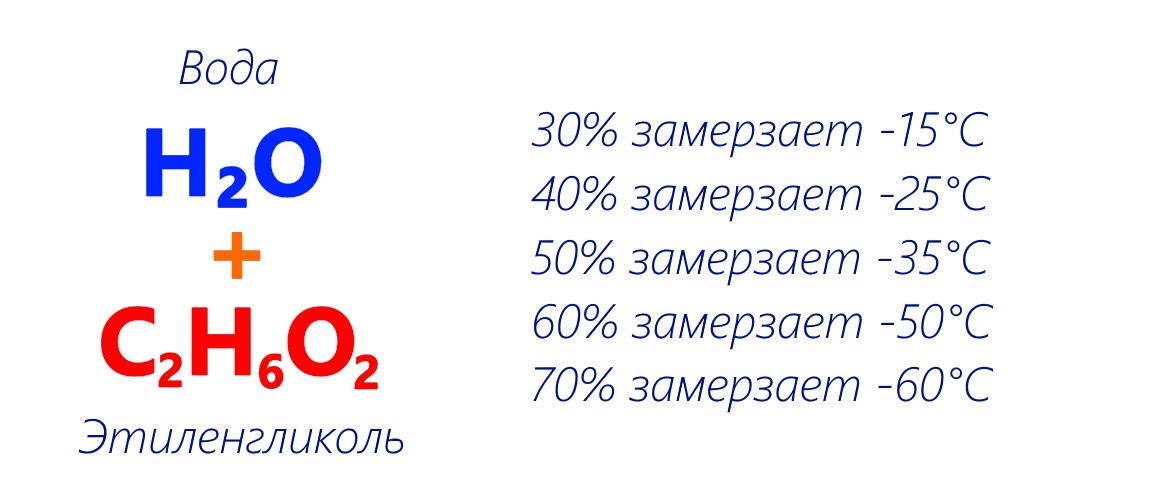 - Смесь воды с антифризом на основе этиленгликоля будет жидкой и при низкой температуре.