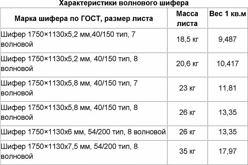 А так как под шифер формируют стропильную систему, то, как ее собрать, и из какого количества материалов, надо в первую очередь знать вес шифера, используемого для покрытия кровли. Эта характеристика зависит от того, сколько волн в листе и от толщины материала.