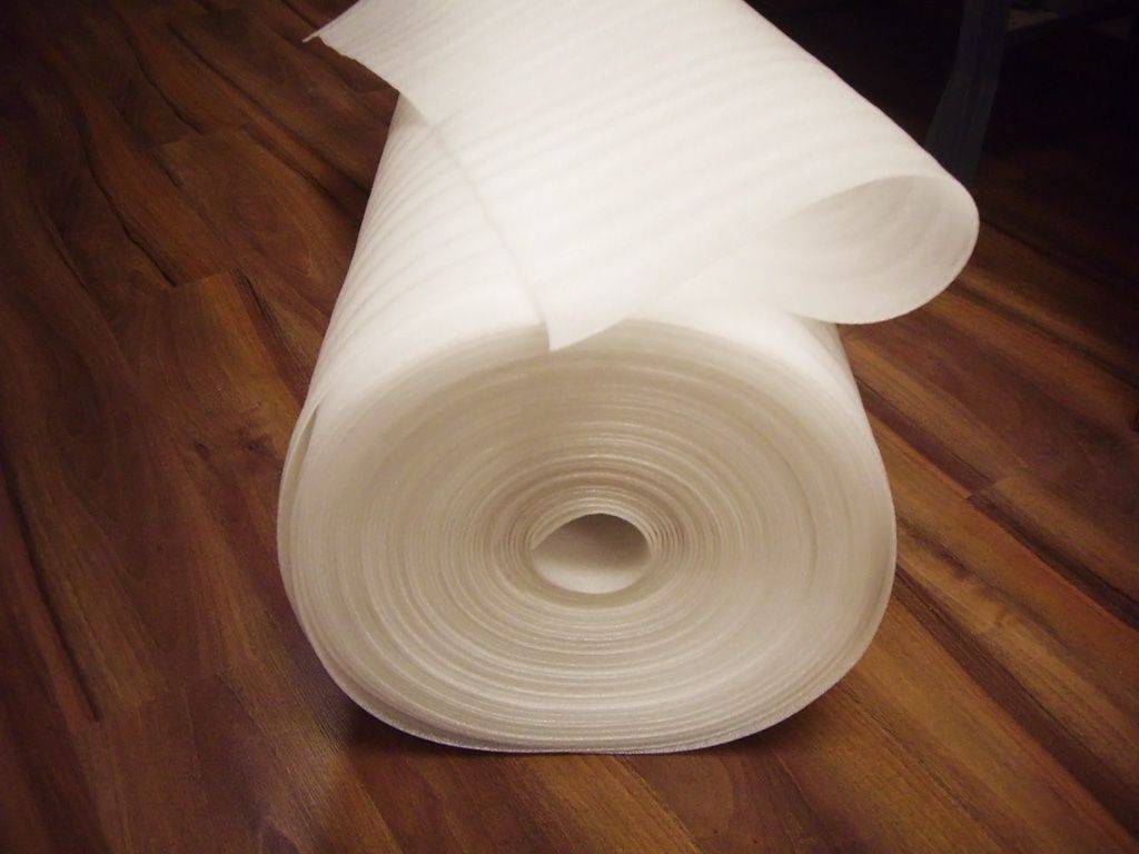 Подкладка из вспененного полиэтилена (ПП) наиболее используемый материал в качестве подложки под паркет. ПП не боится плесени, грибков и вредных бактерий. ПП очень лёгкий и удобный в укладке материал. Подложка продаётся в рулонах.