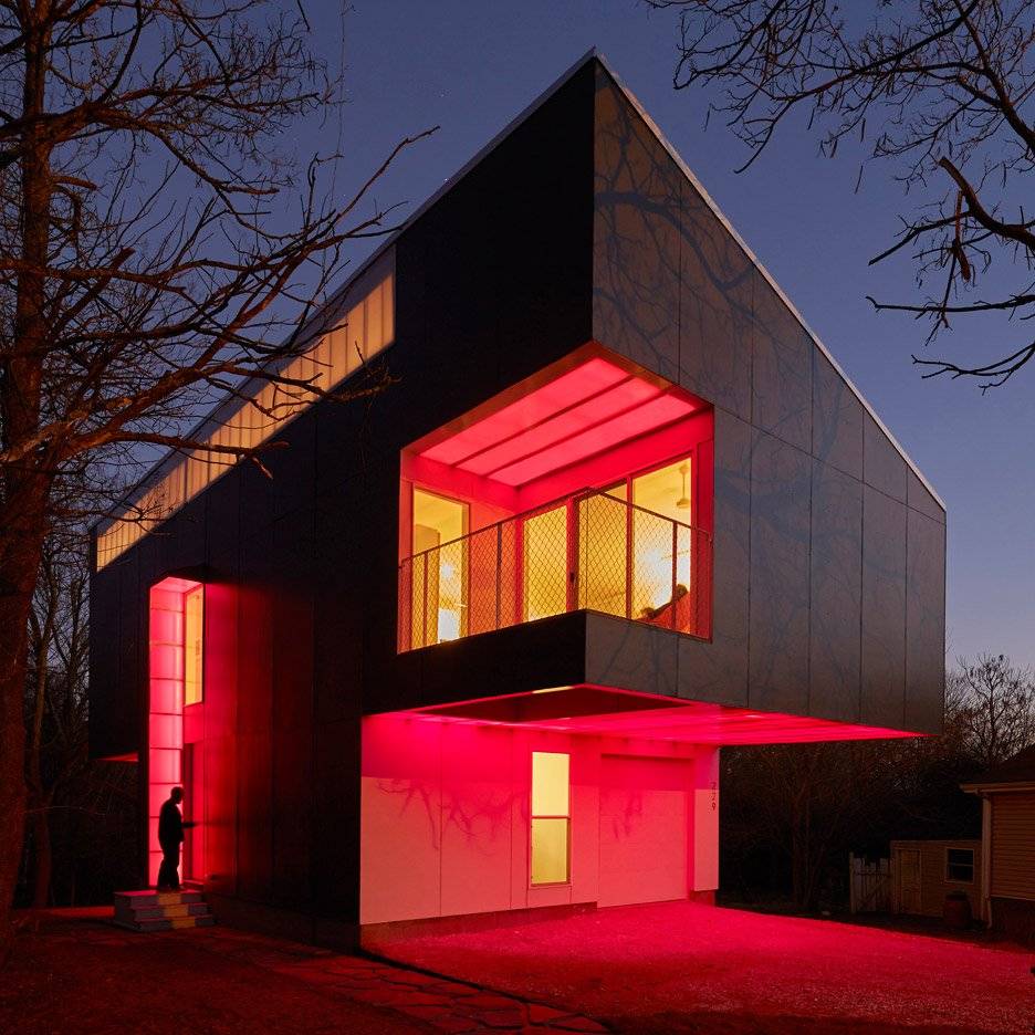 Динамический цвет. Создание художественных образов с помощью изменения цветовых полей подсветки фасада загородного дома.