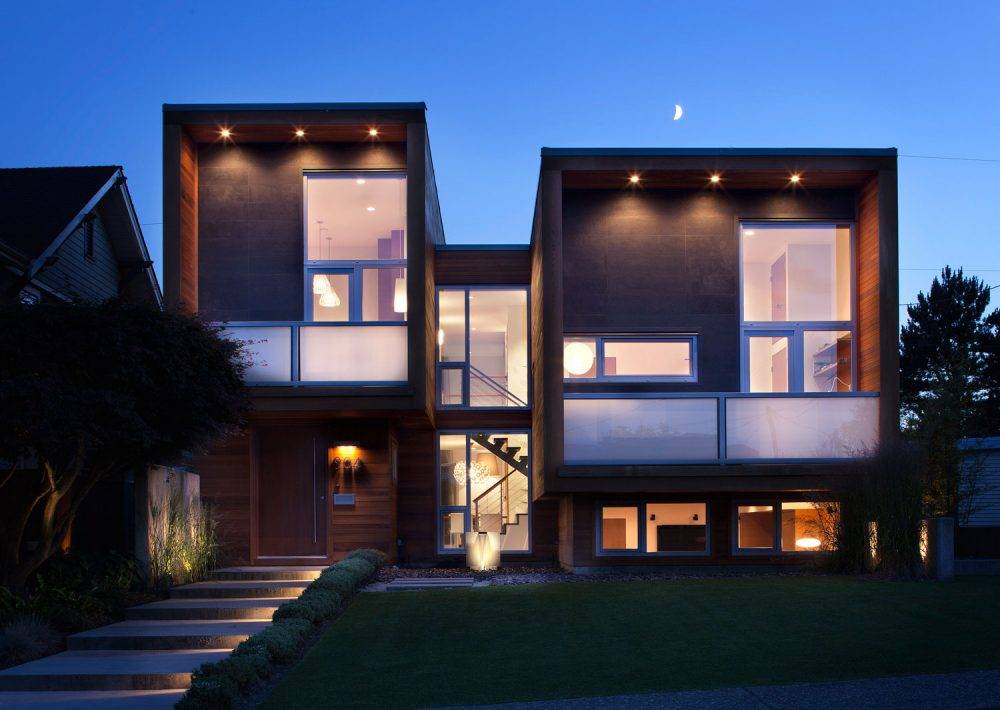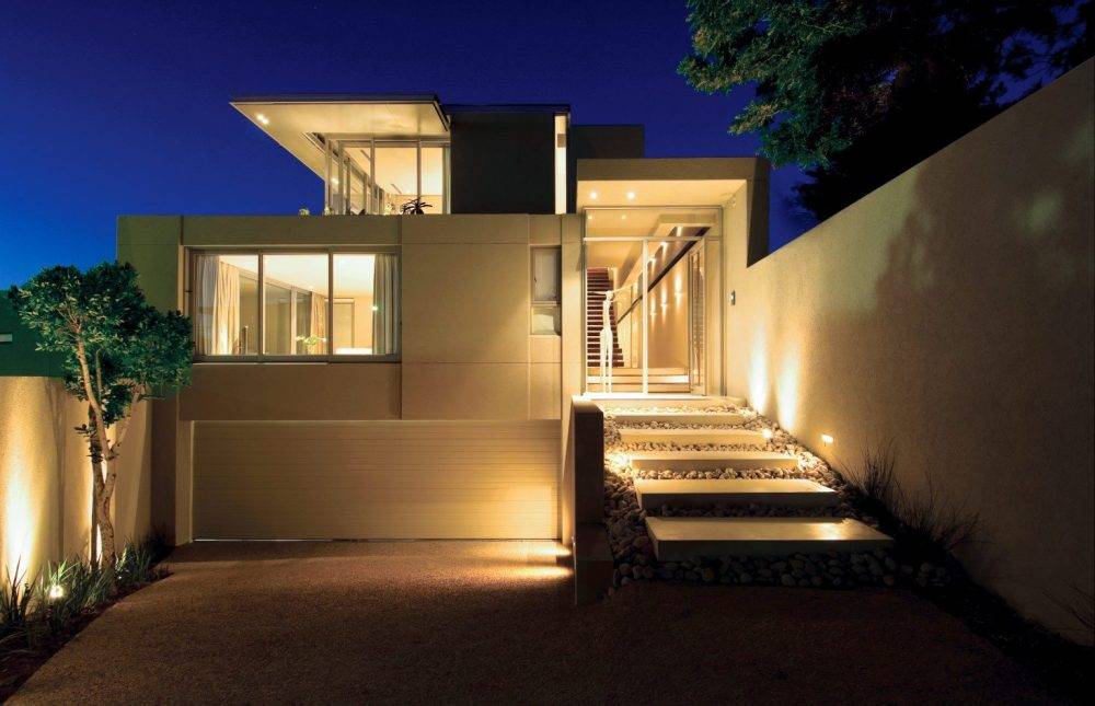 Когда проектируется подсветка фасада частного дома, хозяин занимается решением обеих задач сразу: постройка приобретает декоративные нотки и обеспечивает максимальную безопасность и комфорт перемещения по территории в вечерние часы.