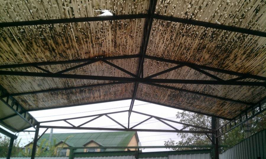 Легкие листы сотового поликарбоната используют для строительства кровель и навесов, а также везде, где желательно обойтись без мощного фундамента. Обычно он востребован при сооружении: