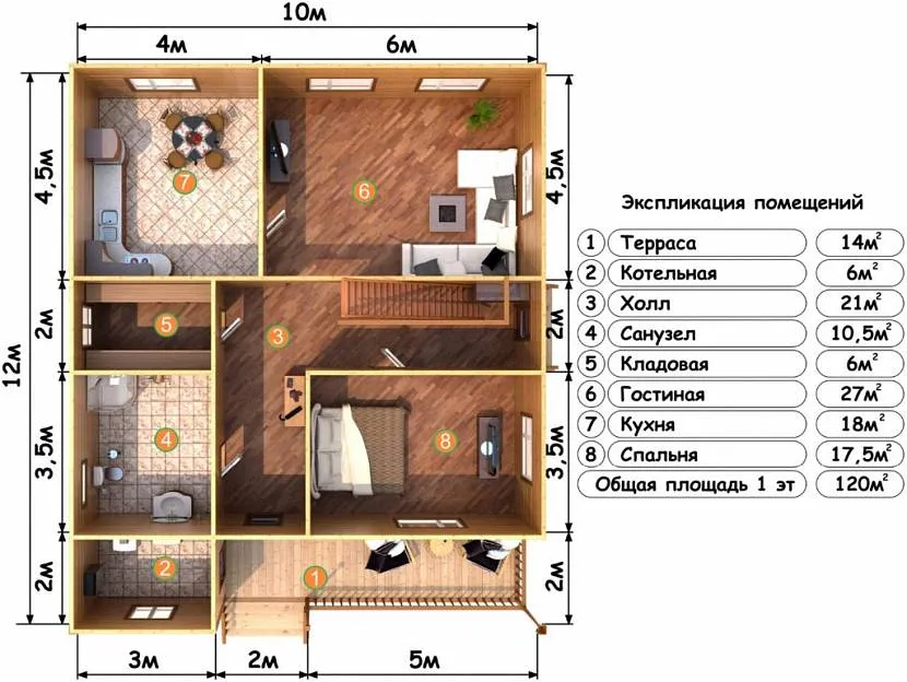 Наличие дома с большой площадью не должно расслаблять жильцов. Напротив: следует приложить все усилия, чтобы планировка дома 10 на 12 была логичной, рациональной и идеально подходящей ритму жизни семьи.