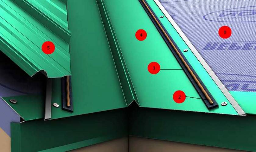 Устройство крыши из металлочерепицыпредполагает набор следующих дополнительных аксессуаров: