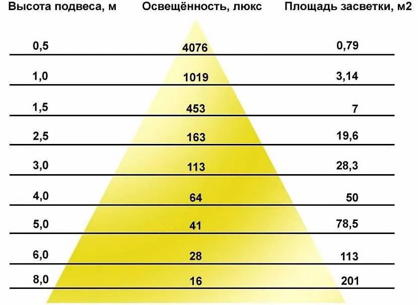 Освещённость и высота подвеса Источник vdome.club