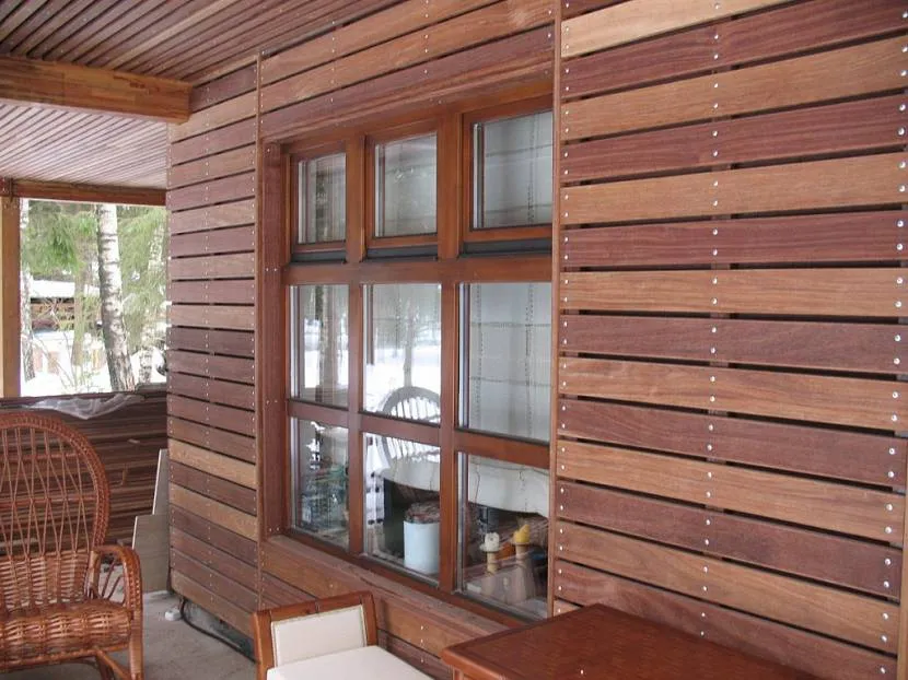 Деревянный – обладающий всеми свойствами натуральной древесины. В число которых входит экологичность, эстетичность и высокая теплоизоляция. Несмотря на большой спектр положительных факторов, стоимость материала не высока, но имеется небольшой минус. Это эксплуатационный срок, который не превышает 8 лет. Кроме того, такой отделке требуется регулярная обработка антисептиками.