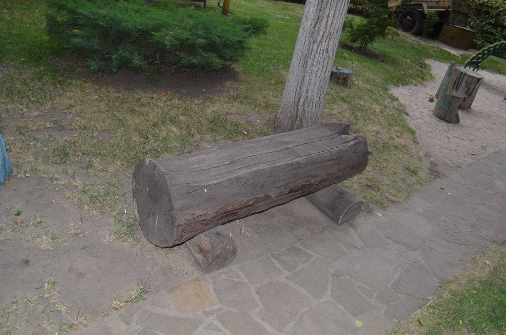 - скамейки со спинками и подлокотниками. Их сидение и спинка изготавливается из распиленного бревна, в качестве опор выступают пеньки и остатки древесины после распила ствола. Для изготовления подлокотников выбираются более тонкие и легкие части бревен. Данный вариант скамьи является самым комфортным в эксплуатации, поэтому часто встречается на приусадебных участках;