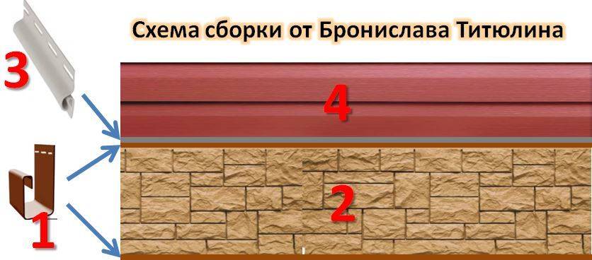 Как видите, всё довольно просто. Такимо бразом вы можете без труда научиться стыковать не только сайдинг и фасадные панели, но и абсолютно разные типы материалов. Теперь рассмотрим второй вариант монтажа – вертикальную стыковку. Здесь тоже нет ничего сложного. Посмотрите на схему: