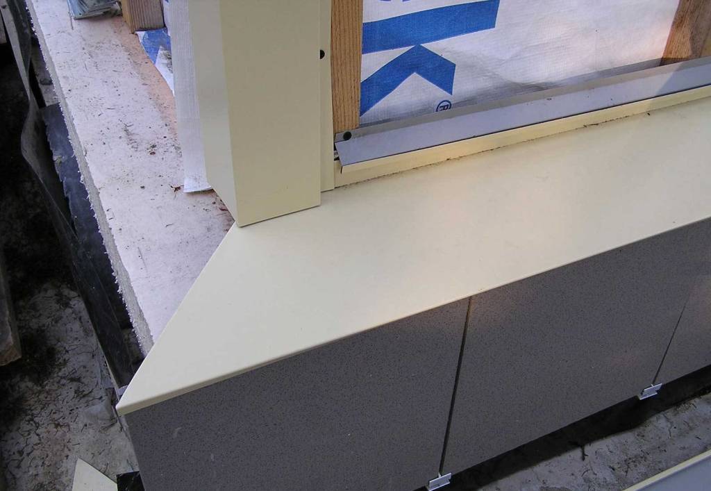 - на верхнем и нижнем околооконных профилях (на полках откосов) вырезают и отгибают «язычки», которые закрывают боковыми профилями;
