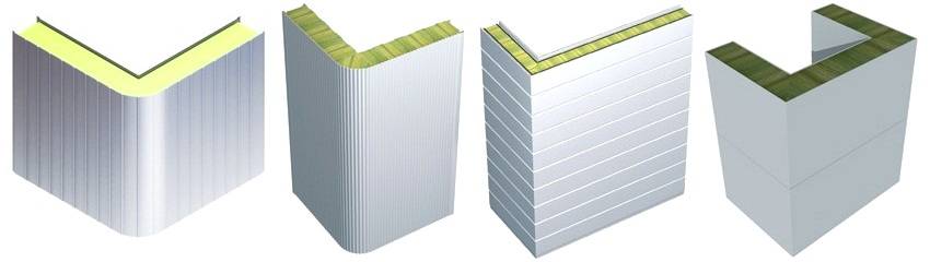 Угловые сендвичные элементы применяются для дизайна, а также предохранения углов здания от воздействия низких температур. Очень часто жильцы домов сталкиваются с тем, что плохо изолированные углы постройки промерзают в зимнее время года. Такие плиты могут иметь одну из двух форм: