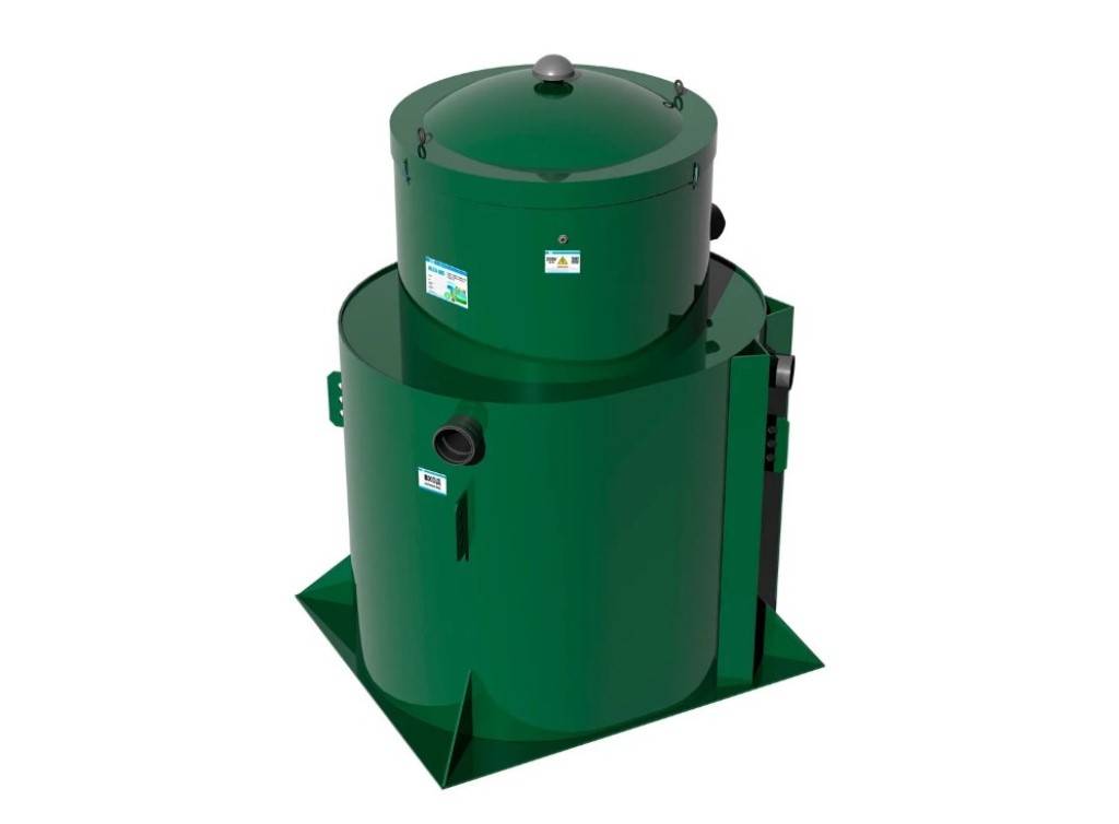 ДСК – сделан из листового пропилена, предназначен для 450 л ежедневных стоков, сложная конфигурация, весит 60 кг, монтируется вручную;