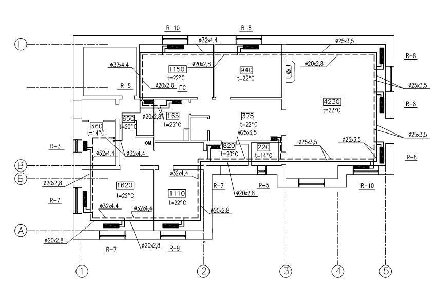 Схема закрытой двухтрубной системы отопления двухэтажного дома с принудительной циркуляцией