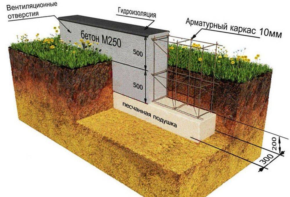 Он считается более выгодным, чем сплошной под весь дом и убирает боковые нагрузки на грунт. Стены на него можно устанавливать только после полного набора прочности. Стоимость такого вида составляет от 10000 за кубический метр.