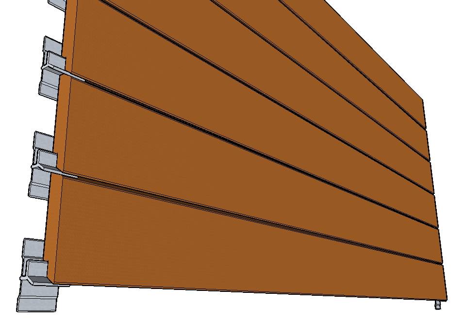 - Доски имеют не прямоугольный, а клиновидный профиль. За счет этого значительно улучшается дизайнерский вид поверхностей. Уменьшается угол наклона нижних граней, поверхность становится менее ребристой. Еще один плюс – величина нахлеста не оказывает влияния на угол наклона ламелей.