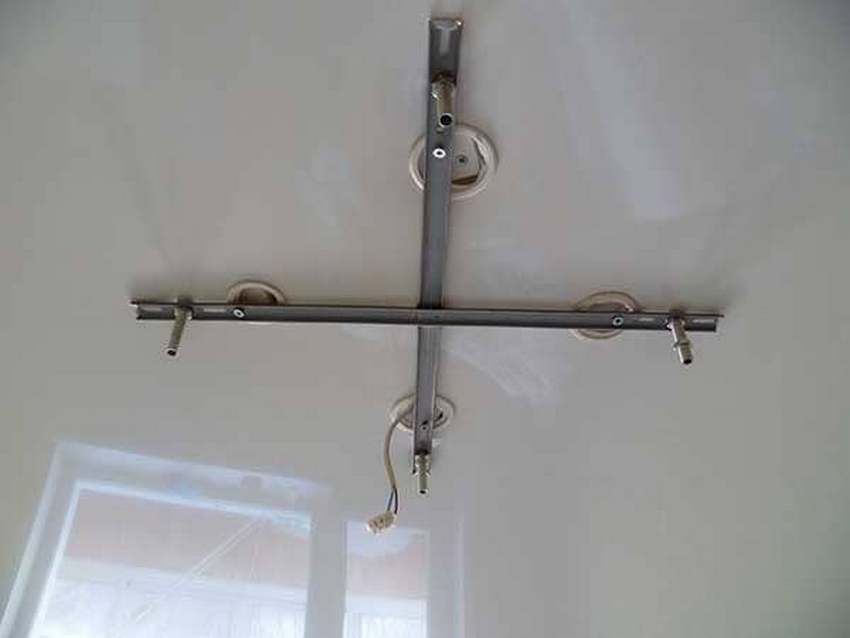 Крестообразную пластину нужно фиксировать несколькими саморезами, и основание нужно больше. Такой вид фурнитуры используется и для круглых, и для квадратных, и для овальных светильников. В основном, это модели довольно массивные, поэтому прочность подготовленной площадки должна быть соответствующей.