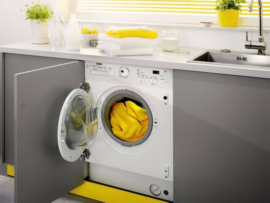 Большинство стиралок с фронтальной загрузкой от Самсунг и LG подходят для встраивания под столешницу, в тумбу. Их можно размещать в ванной, на кухне и в любом другом помещении, где есть возможность подсоединения слива к канализации.