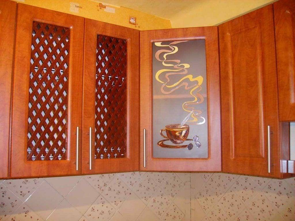 вид также должен гармонировать с составом и фактурой фасада всей кухни. Каленое и витражное остекление будет гармонировать с классической кухней, в дизайне которых не приемлет резких оттенков и использования новых материалов в отделке, особенно с использованием ламинирования или матовых материалов. В современных видах кухонь приемлемым вариантом являются рамочные стекла с использованием различных цветов и материалов фасадов. А вот как может выглядеть фартук для кухни пэчворк, и как его установить на месте, подробно указано тут.