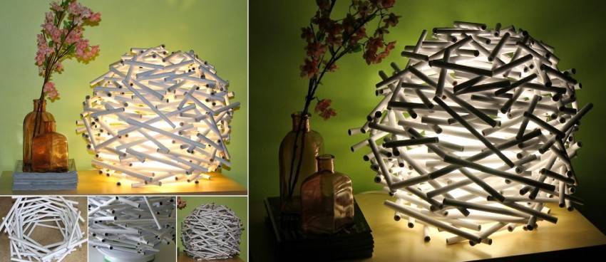 Для начала, давайте посмотрим, как сделать большой светильник, который заменит люстру в практически любой комнате. Эта простая и оригинальная идея должна прийтись по вкусу многим творческим личностям.
