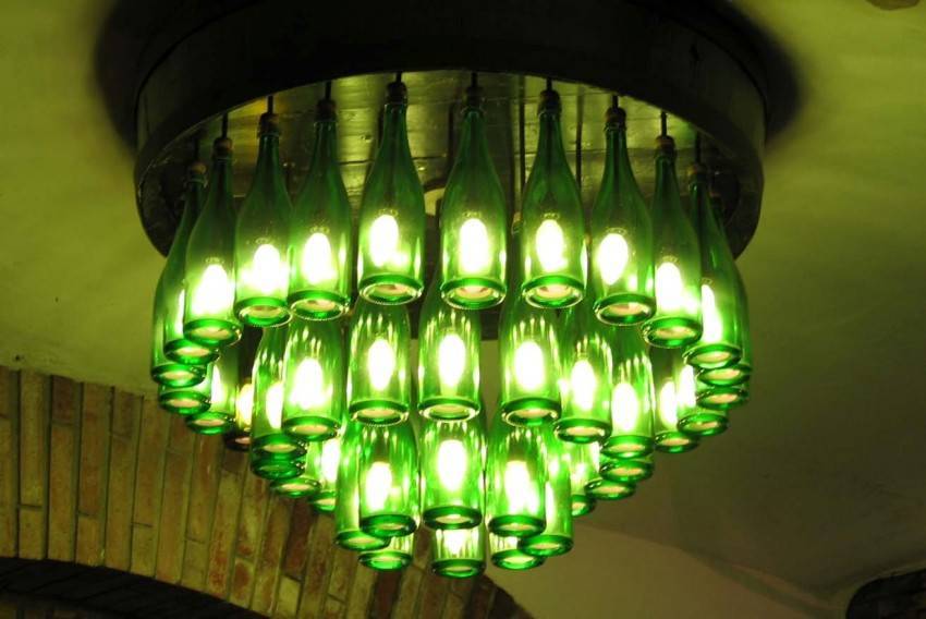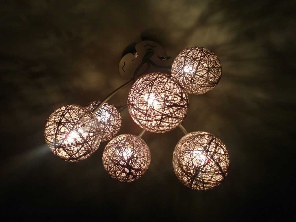 Проще всего своими руками сделать люстру из уже готовой, старой, что вышла из строя (например, разбилась пара стеклянных плафонов). В этом варианте нужно проверить работу всех электрических деталей и заняться творческим оформление новых плафонов.