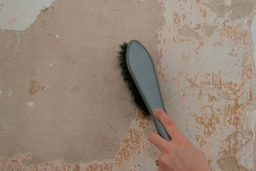 - В труднодоступных местах используют перфоратор с насадками. Остатки штукатурки снимаются металлической щёткой.