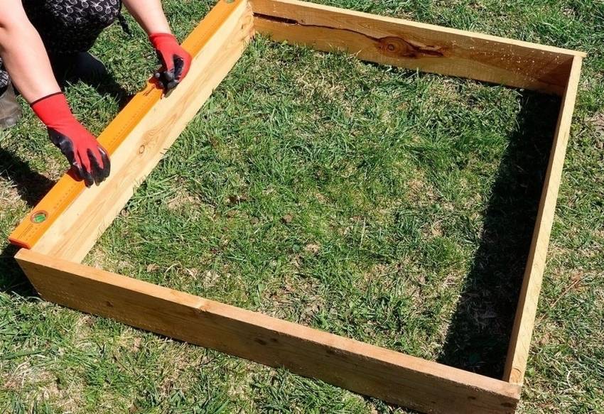 - монтаж опалубки. В качестве съемной опалубки выбирают доски или специальную фанеру. Высота опалубки зависит от устройства теплицы – при наличии высоких грядок достаточно подъема над поверхностью грунта на 100…150 мм;
