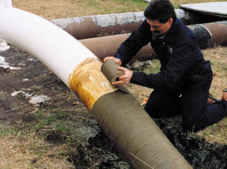 - Перед нанесением изоляции трубы покрывают по спирали скотчем-фольгой.