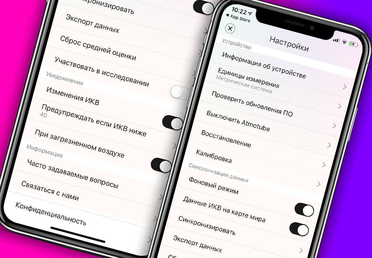 Есть тумблеры отключения фоновых замеров чистоты воздуха и их анонимной выгрузки на общедоступную карту.